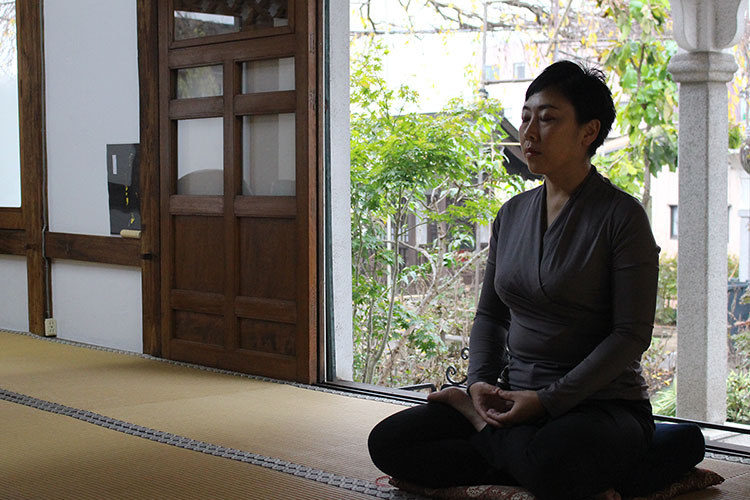 Several temples on the Chichibu 34 Kannon Pilgrimage provide guided experiences of zazen, and Hōshōji (#32) offers instruction in English and Mandarin. After a brief explanation of how meditation is performed, visitors seat themselves on small cushions called zafu. There are several possible sitting positions, including half- and full-lotus, cross-legged, and sitting on the heels of the feet with legs folded underneath (seiza). The seiza posture forms a triangle between the hips, legs, and back, which relieves stress on the lower back, and is popular with Japanese beginners. Ultimately, it is important to choose a posture in which one can sit comfortably for the duration of the meditation session. Hands are typically held in the lap, with the fingers of the left hand resting in the palm of the right and the tips of the thumbs pointed toward one another to form a triangle. This triangle symbolizes the Three Jewels of Buddhism: the Buddha, the Dharma (Buddhist teachings), and the Sangha (Buddhist community).