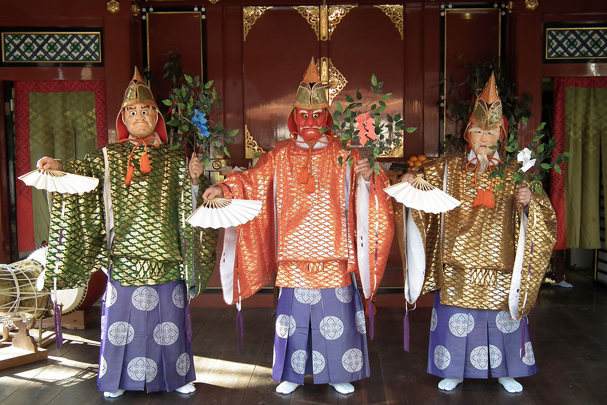Chichibu Jinja Shrine was founded during the reign of Emperor Sujin, the legendary tenth emperor of Japan. At the time, Chichibu was considered part of Musashi Province (now the areas of Saitama and Tokyo). The shrine was established by the provincial administrator to honor his ancestral Shinto deity, Yagokoro Omoikane. Later, the administrator himself was enshrined as Chichibu Hiko. During the Kamakura period (1185–1333), the area was controlled by the Taira, one of the great military families of Japanese history. They incorporated the Buddhist deity Myōken (Sanskrit: Sudarśana) into the shrine, and renamed it the “Shrine to Myōken” (Myōkengū). Combined worship of both Shinto and Buddhist deities continued until 1868, when it was outlawed by the Meiji government, and Myōken was replaced with the Shinto deity Ame no Minakanushi no Kami. In 1984, Prince Chichibu (1902–1953), the younger brother of Emperor Shōwa (1901–1989) was enshrined as Chichibu no Miya Yasuhito Shin'ō. These four deities are known as the “four pillars” of Chichibu Jinja Shrine.