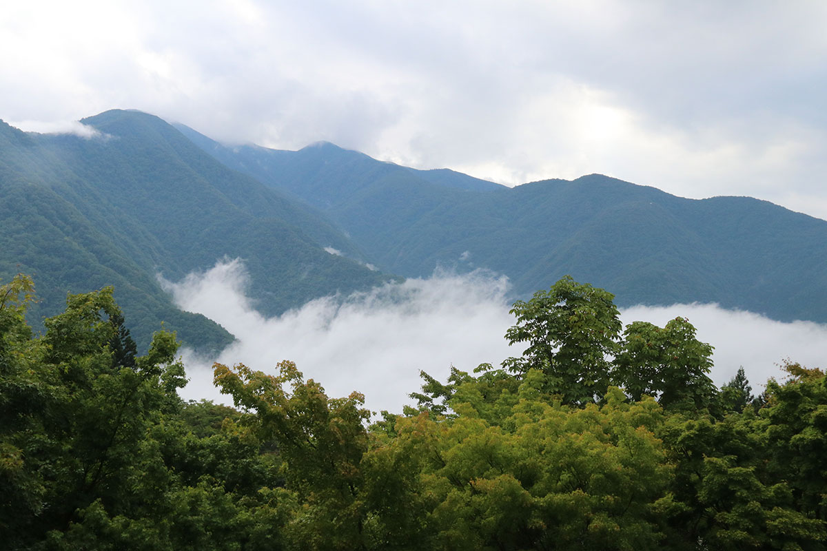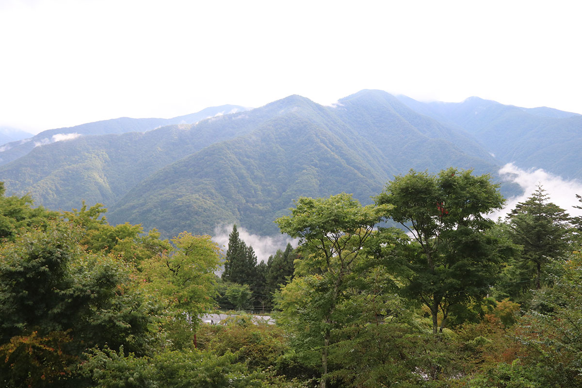 Another kilometer past the shrine is the top of the ridge, where Yōhaiden Pavilion offers a magnificent view of Chichibu and the surrounding mountains. Yōhaiden was built for worshippers to pay their respects to a shrine on Mt. Myōhō without having to travel there. Just past the pavilion is a large torii gate that marks the side entrance to the shrine complex. The main approach continues through the gate and left, winding around to the shrine’s front entrance. The main approach trail ascends more than 600 meters, and parts of it are quite steep. With rest stops, the hike typically takes around three hours.