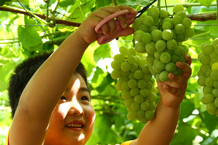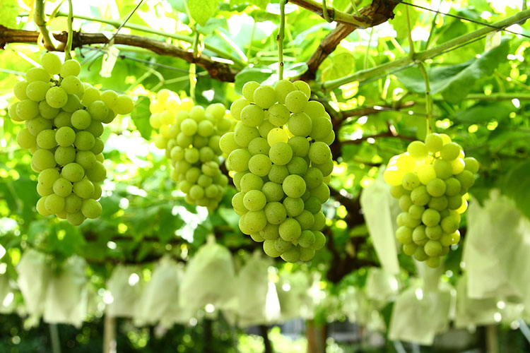 Grapes are another common offering. Ready for picking from August through November, grapes in Chichibu come in many varieties. The large, dark-purple Kyohō grape has been grown in Japan for centuries. Newer cultivars include Pione, Himrod Seedless, Muscat Bailey A, Queen Nina, and Shine Muscat. Chichibu even has its own local variety with a registered trademark, the seedless Mountain Ruby. Unlike other fruit, prices for grapes and grape-picking vary depending on the variety.