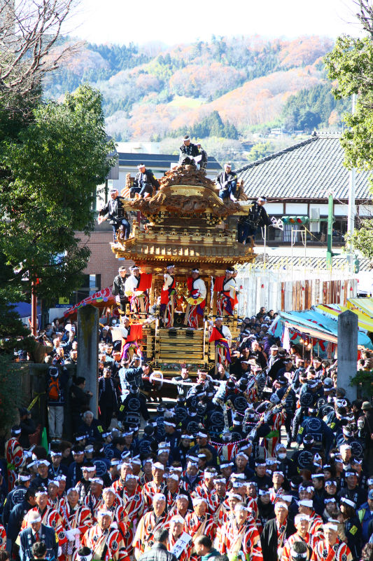 This is the annual festival of the shrine in Chichibu that collectively enshrines several gods in the area, and is counted as one of Japan's top three Hikiyama festivals together with Kyoto Gion festival and Hida Takayama festival. Two splendid kasaboko floats and 4 Yatai floats are pulled around town.