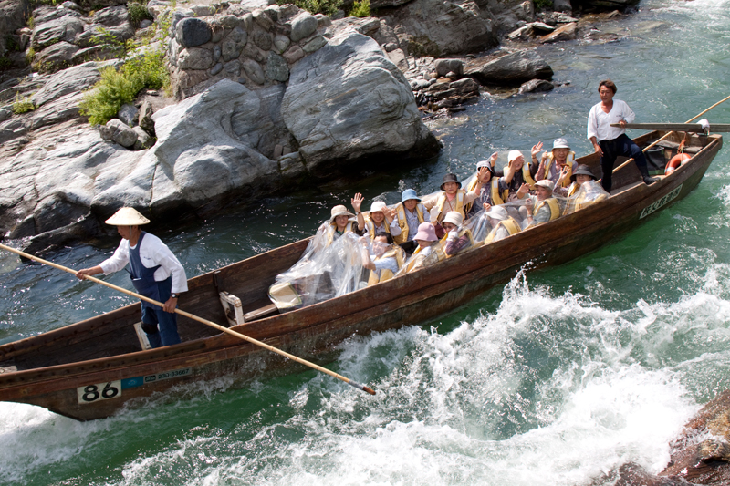 20세기 초부터 운행하고 있는 강하행은 나가토로의 큰 매력의 하나로서 연간 20만 명이 넘는 관광객들이 찾고 있습니다. 뱃사공이 조종하는 배를 타고 급류를 타거나 천천히 강물을 내려가면서 아름다운 계곡의 자연경관을 즐길 수 있습니다.