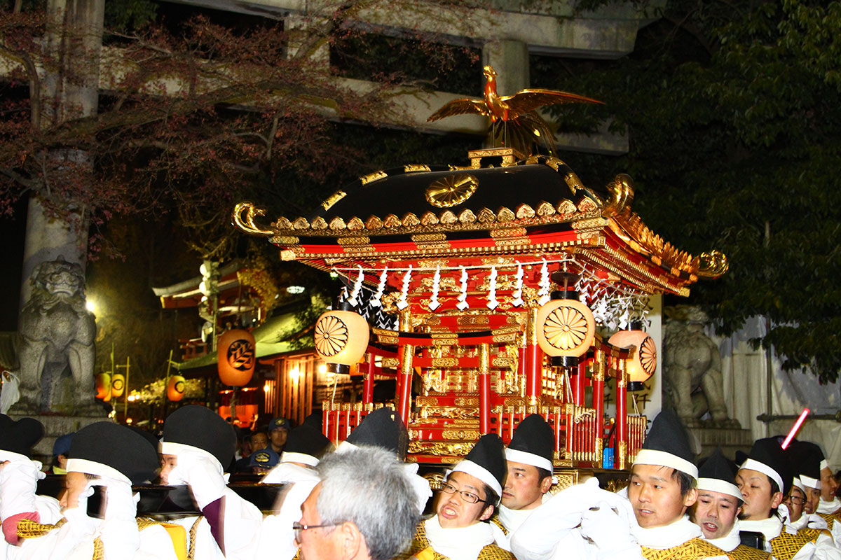 現代夜祭主要在江戶時代(1603-1867)發展形成,當時被稱作「妙見大祭」或「霜月大祭」,於每年11月上旬舉辦。彼時神社附近開辦的絲綢市集「絹大市」萬商雲集,絲綢商人從周邊地區趕來販售絲綢、參加祭典,積極帶動了夜祭的發展。隨著地區經濟日益繁榮,祭典的規模和豪華程度也逐年俱增。