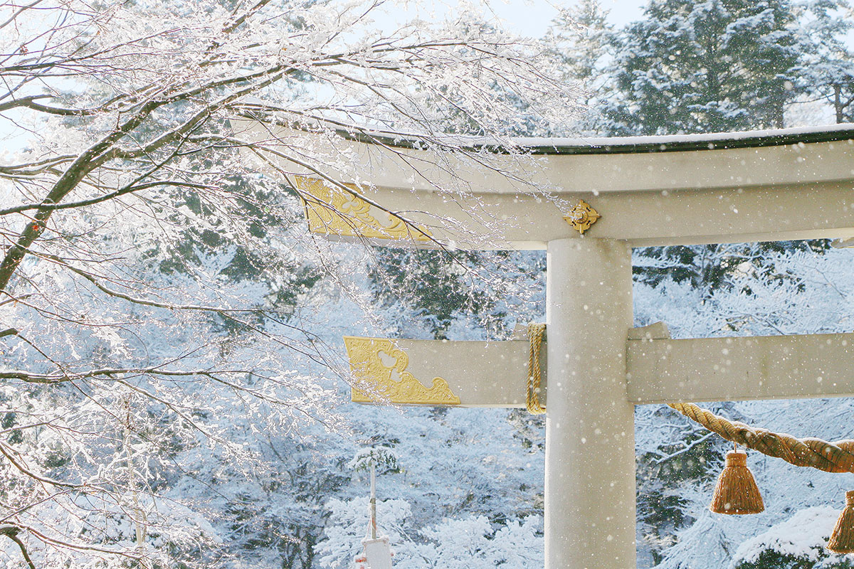 12世紀時,佛教僧侶空圓(1121年卒)在山麓建造了玉泉寺。此寺院後來被納入現有的神社內,最終神道教與佛教的山岳修行融合為一。爾後的幾個世紀裡,神道的神都被視作佛教中佛的化身,這種信仰一直持續至1868年。明治時代(1868-1912)政府頒布新令後,佛教和神道教的所有場所和習俗才徹底分離。