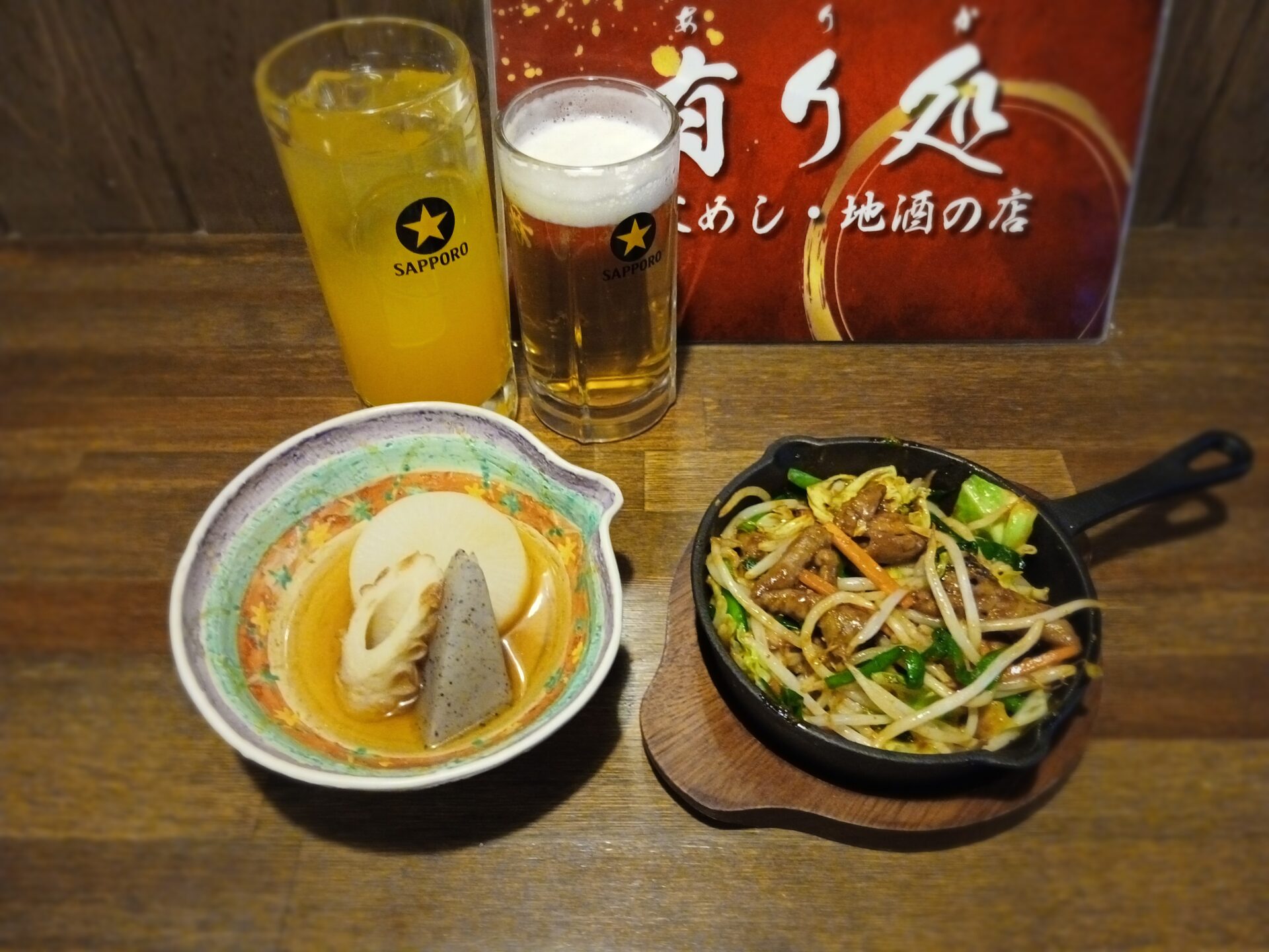 おでんとホルモン焼き鉄板とワンドリンク