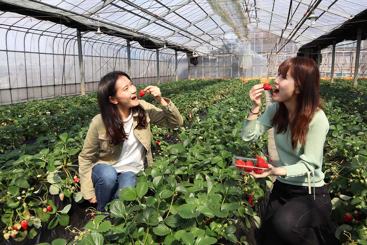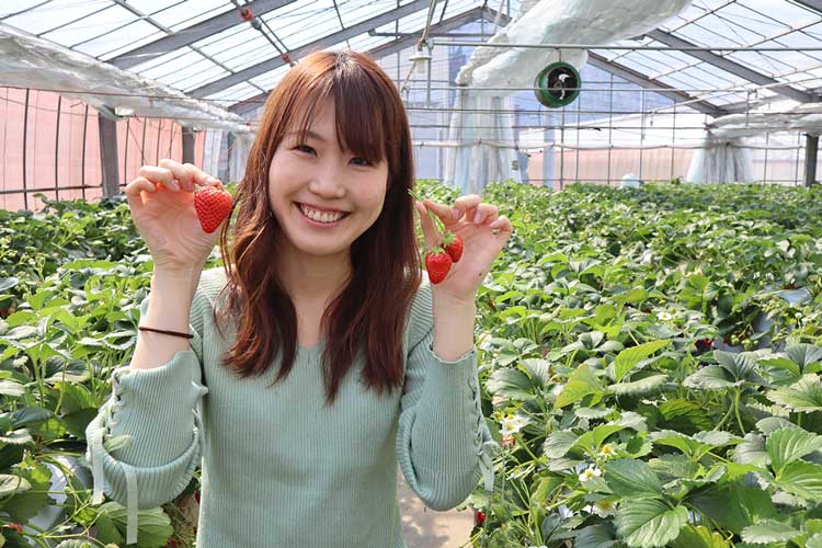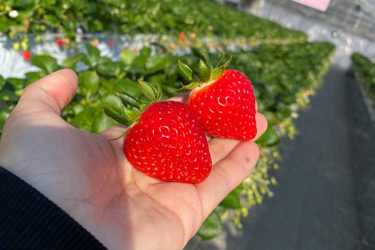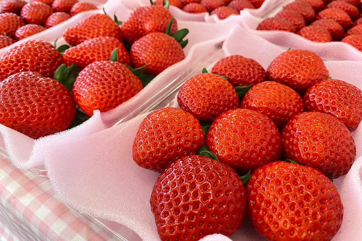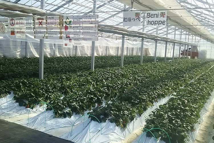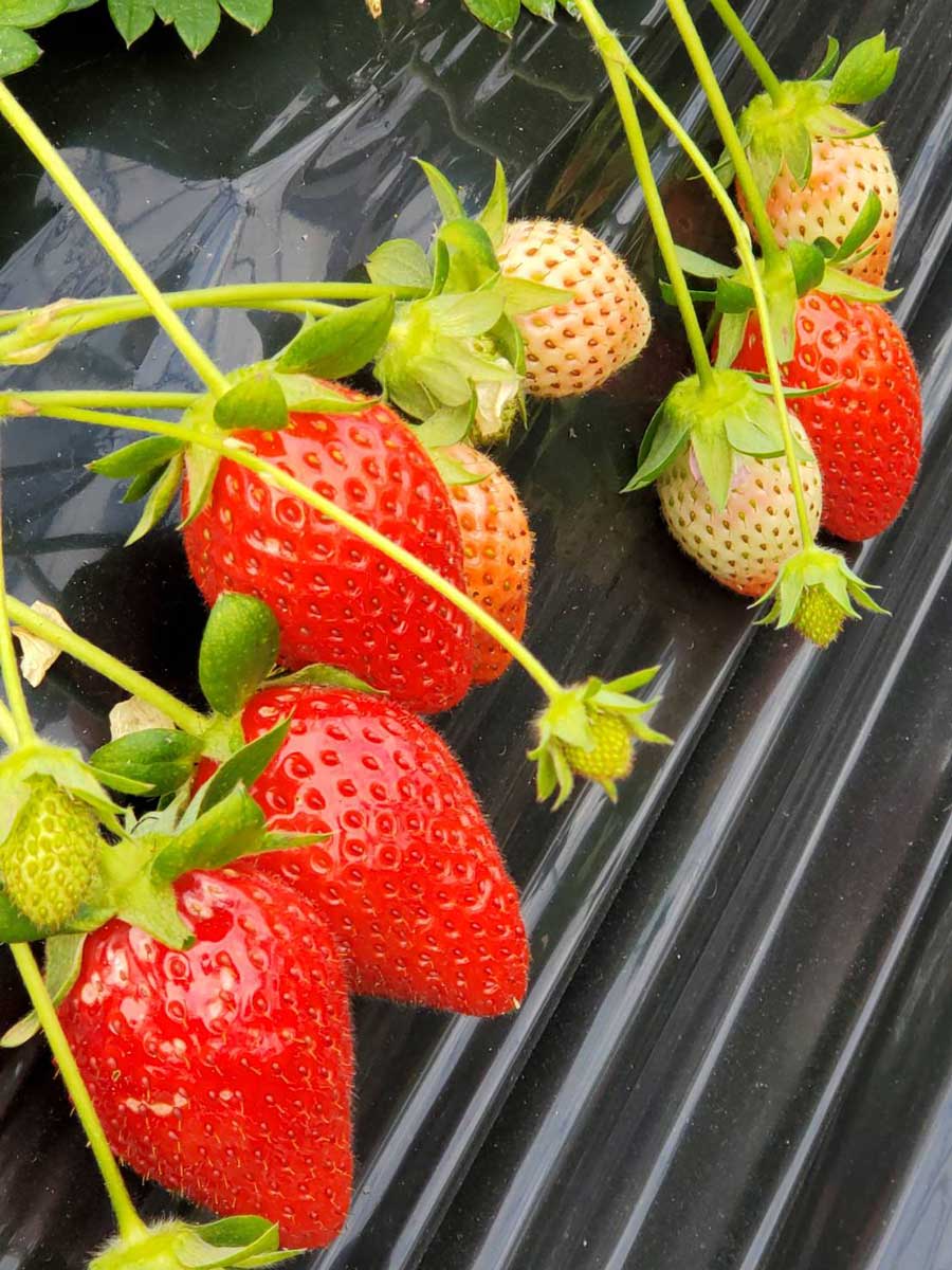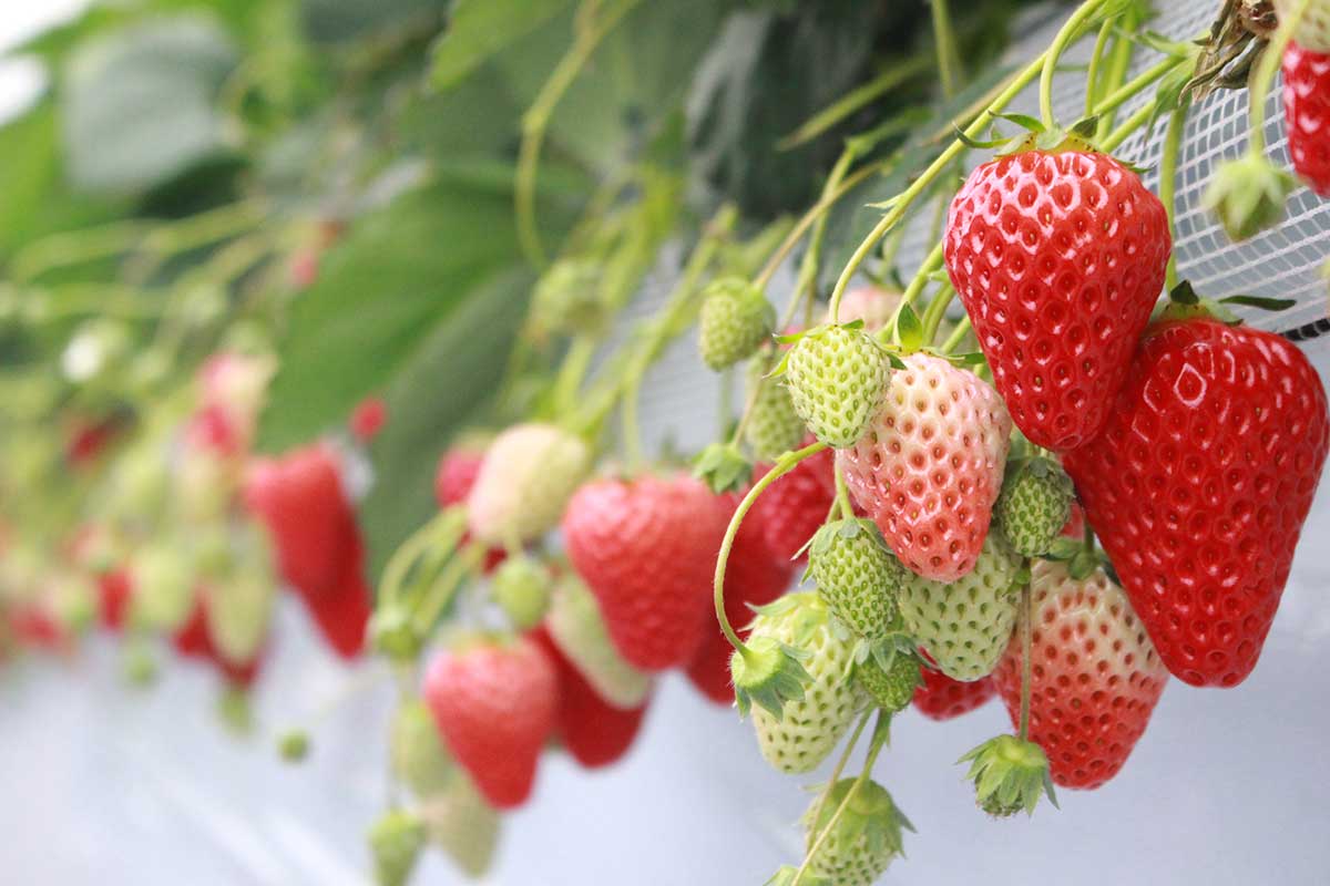 高設栽培なので、かがむのが苦手な方や、妊娠中の方でも立ったまま”楽々”いちご狩りができます。品種の異なる数種類の、甘くて美味しいいちごの食べ比べが出来ます。