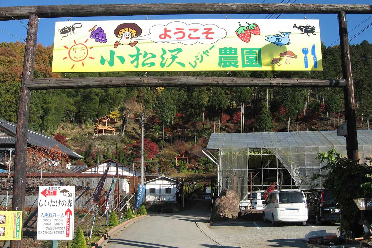 小松沢レジャー農園は、いちご狩りやぶどう狩りを始め、しいたけ狩り体験などができる観光農園です。季節ごとに、マス釣り、マスつかみ取り、昆虫採集、さつまいも掘りなど1年を通して楽しめる体験がいっぱい!溶岩バーベキュー、うどん打ちやそば打ち体験、きのこ鍋、ピザ焼き体験などお食事も充実。夏には流しそうめんまでできちゃいます。いつ訪れてもシーズンごとにいろんな楽しみ方ができます。