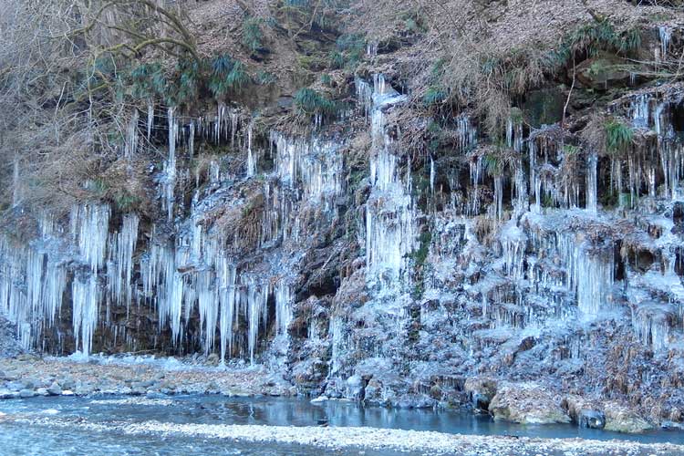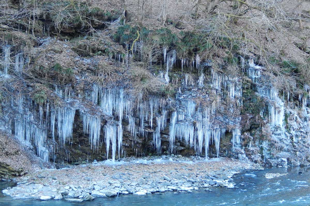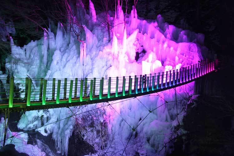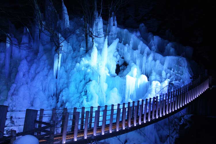 高さ30m、幅200mにわたる寒い冬だけの特別な氷の世界。あしがくぼの氷柱は、太陽の光にきらめく“映えスポット”がいっぱい。氷のアートに、心もときめくひとときを。